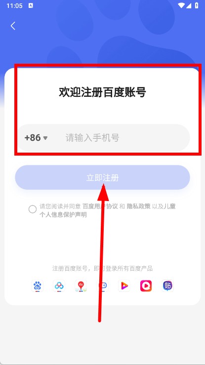 4、输入手机号码,最后点击立即注册按钮,即可完成账号注册流程。