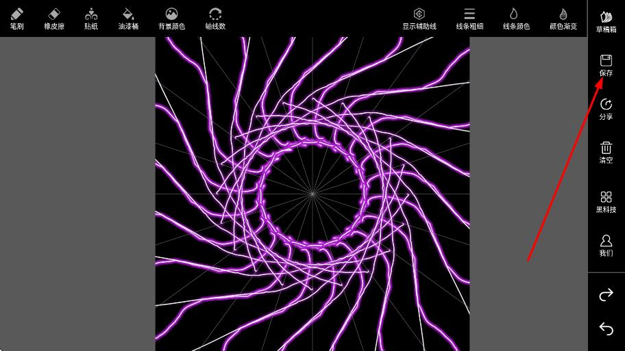 4、创作完成后,点击右侧的保存,保存绘制的图案。
