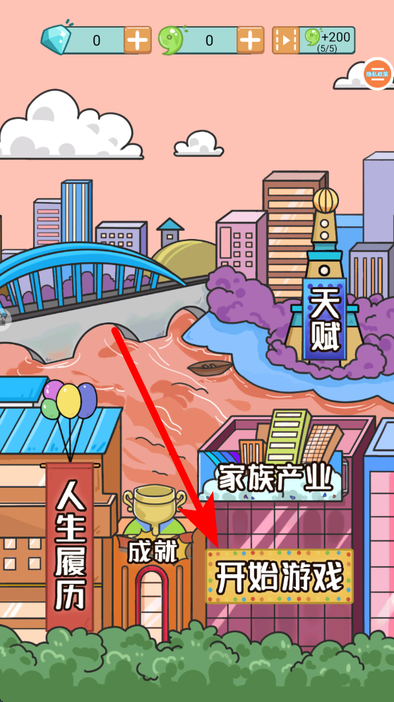 1、新手玩家在初始界面找到开始游戏,点击后进入游戏,开启属于自己的中国式人生模拟,从出生等阶段逐步展开人生历程。