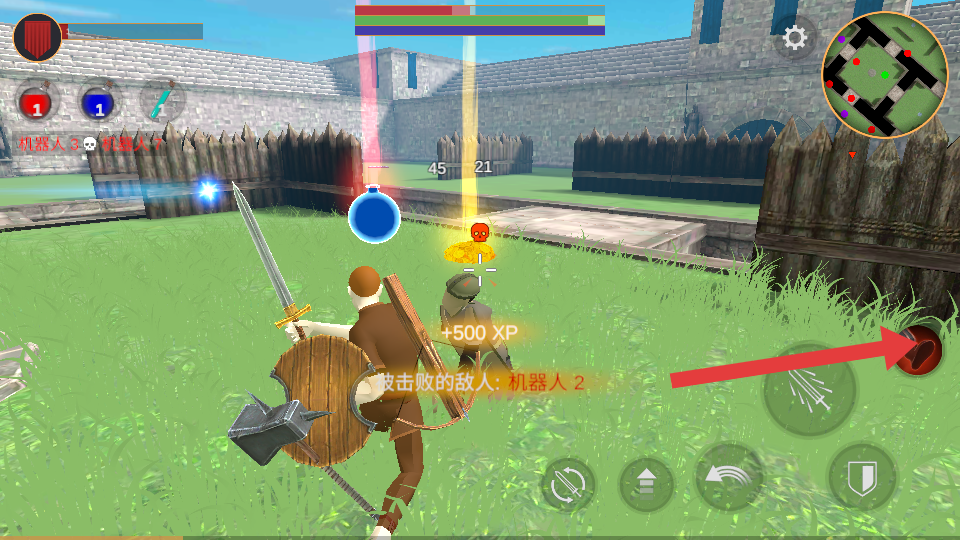 1、在城堡及周边区域探索时,若遭遇机器人敌人,先举盾格挡其攻击,待敌人攻击间隙迅速挥剑反击,避免硬抗伤害导致角色血量大幅下降。