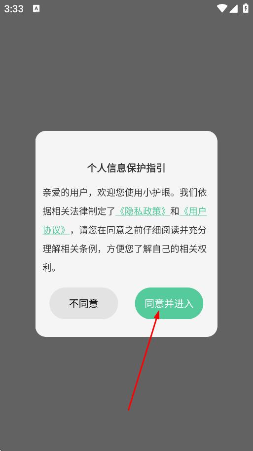 1、在个人信息保护指引弹窗中,点击同意并进入,进入应用。