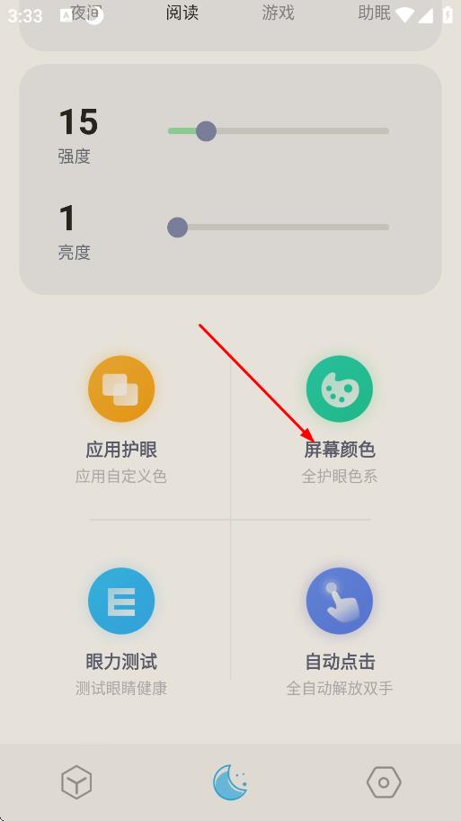 2、调节屏幕参数:进入屏幕设置板块,选择喜欢的屏幕颜色,拖动亮度滑块调节至舒适亮度,设置完成后即时生效,提升视觉体验。