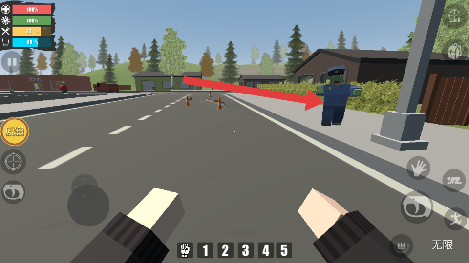 2、探索过程中遭遇僵尸敌人时,若未获取武器,可利用场景内的树木、岩石等障碍物与僵尸周旋,寻找时机绕至安全区域。