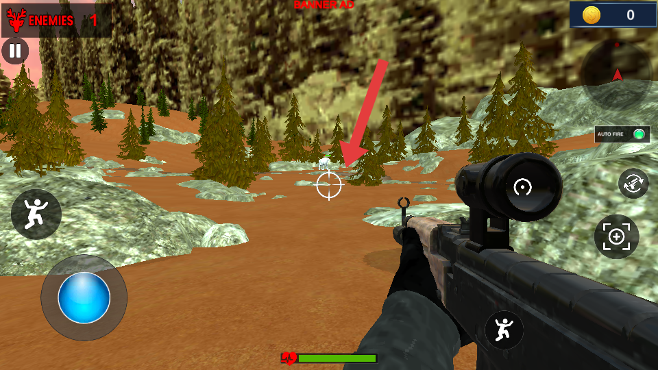 1、基础狩猎操作:安装游戏后进入主页面,点击狩猎即可开始,通过喇叭声音判断猎物方向,右侧操作栏支持左右滑动调整视角,左侧为射击按钮。