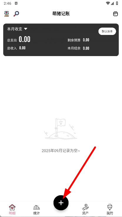 1、打开APP,点击页面底部的+按钮,进入收支分类选择页面。