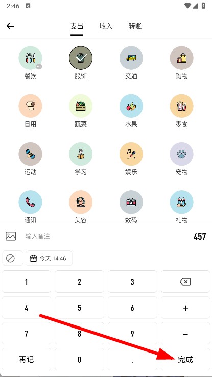 3、金额输入完成后,点击完成按钮,进入账单保存页面。