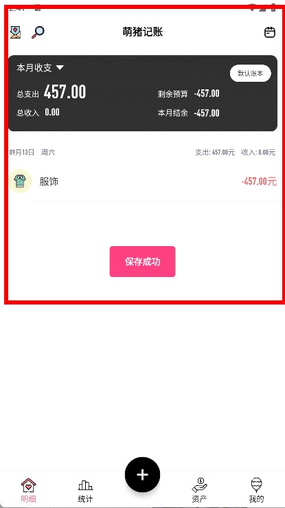 4看到本月收支等信息,提示保存成功,完成该笔支出的记账操作。