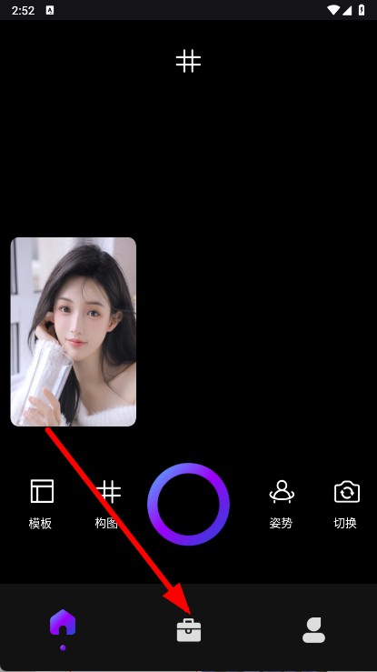 1、打开美食相机,点击底部的工具图标,进入功能选择页面。