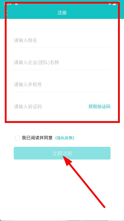 4、依次输入信息,勾选同意后,点击立即注册按钮,完成注册操作。