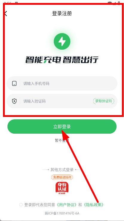 3、输入手机号码,获取并输入验证码后,点击立即登录按钮。