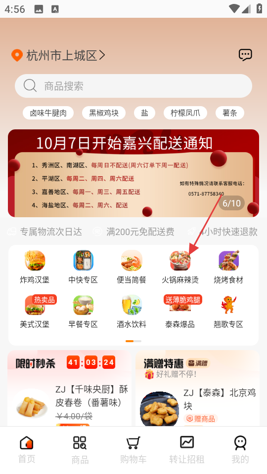 1、点击页面中的火锅麻辣烫选项,进入火锅麻辣烫分类页面。