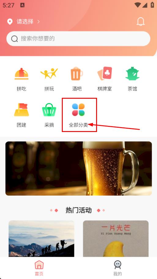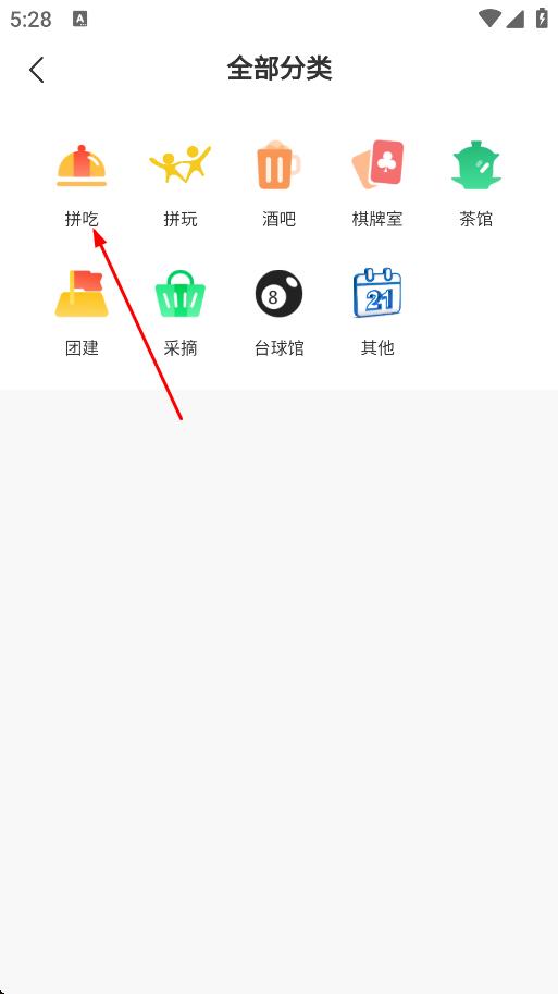2、在全部分类页面,点击拼吃,进入拼吃活动列表页面。
