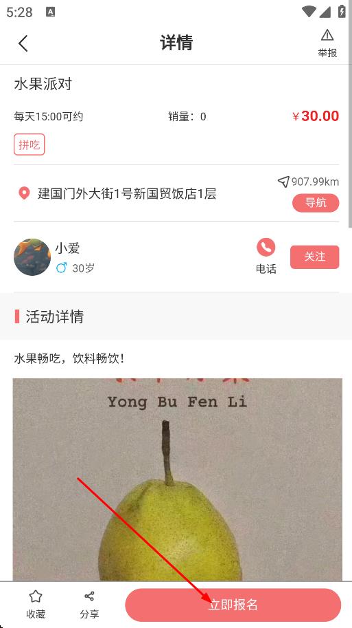 4、进入活动详情页,查看活动信息后,点击立即报名完成报名。