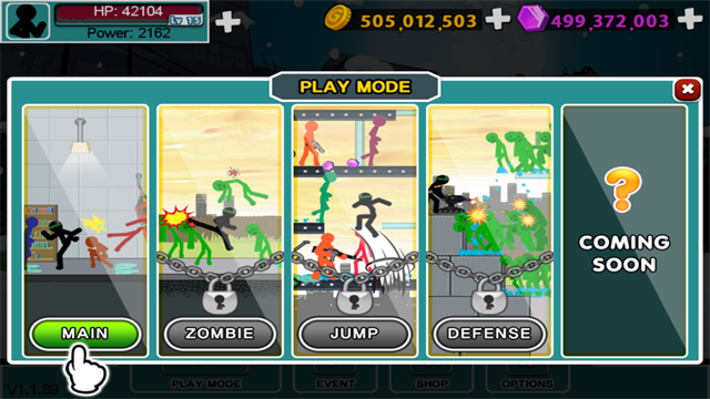 1、多元角色与模式:开局提供多个不同的火柴人角色供选择,涵盖单人闯关与团队战斗两大核心模式,单人模式适合独自挑战自我,体验多人协同作战乐趣。