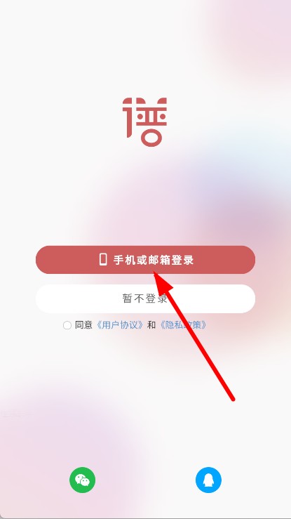 1、打开有谱么,点击手机或邮箱登录按钮,进入手机、邮箱登录页面。