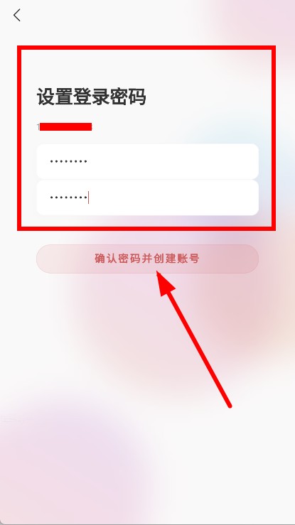 4、设置并确认登录密码后,点击确认密码并创建账号按钮,完成注册操作。