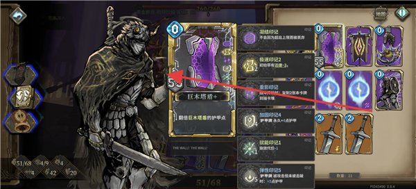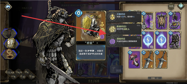 2、在卡牌选择界面,观察各类卡牌效果,像盾牌卡牌,能在格挡时对敌方造成等于护甲值的伤害,合理选取卡牌构建卡组。