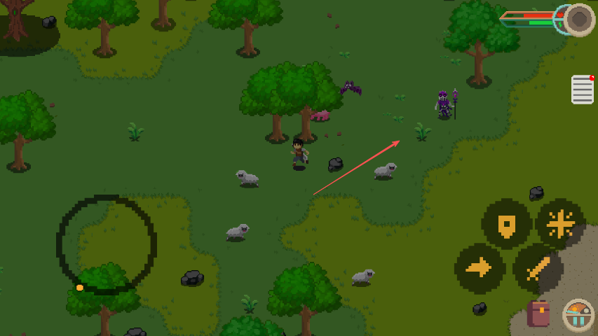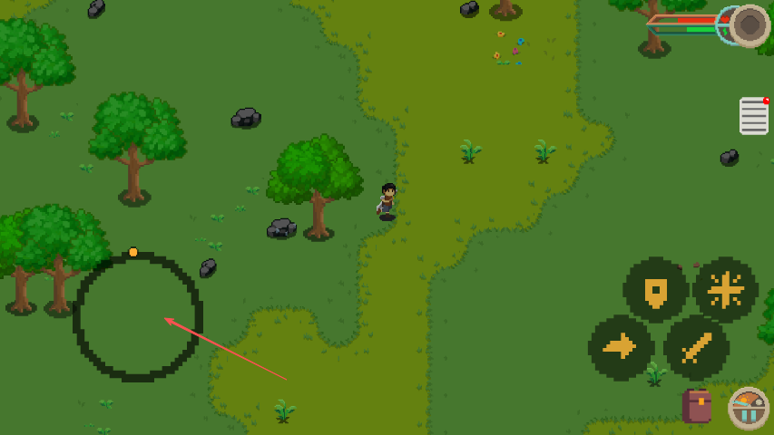 3、发现树木、石头等资源时,靠近并点击攻击按键采集,获取建造和生存材料。