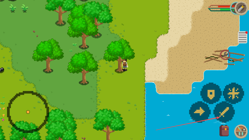 1、像素风格荒岛世界:以复古像素画风构建荒岛场景,从茂密的森林、崎岖的山地到辽阔的海岸,每个区域都有独特的地形与资源分布,视觉呈现简洁却充满细节。