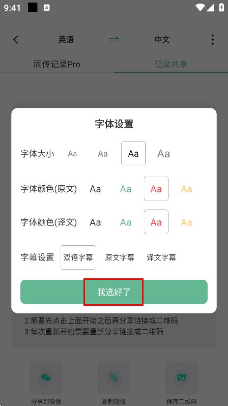 3、在字体设置弹窗中,设置好字体后,点击我选好了,关闭弹窗。