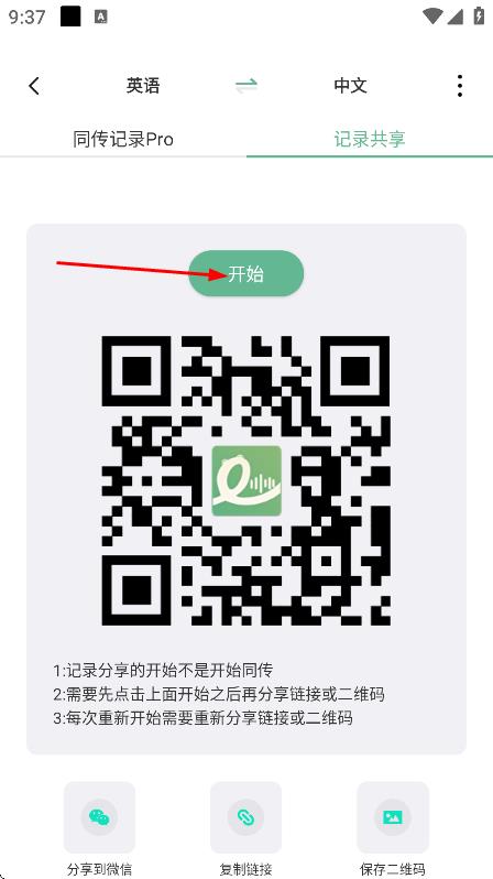 4、最后在同传记录Pro页面,点击开始,启动同声传译功能。