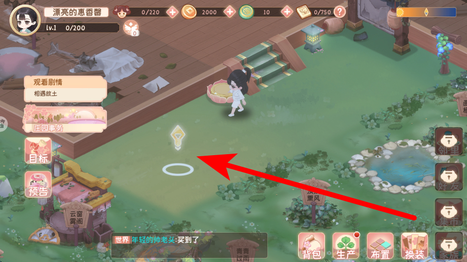1、通过鼠标移动来操控角色在庄园内行动,按照箭头指引的方向移动,能到达不同区域,方便进行后续的生产、任务等操作,让角色在庄园里自如穿梭。