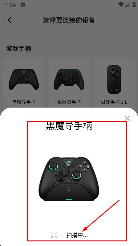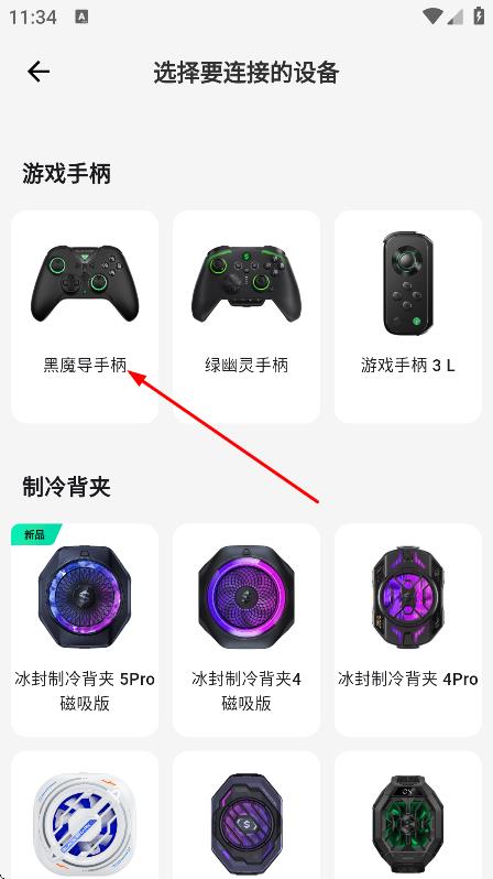 3、在选择设备页面,点击要连接的设备,如黑魔导手柄。
