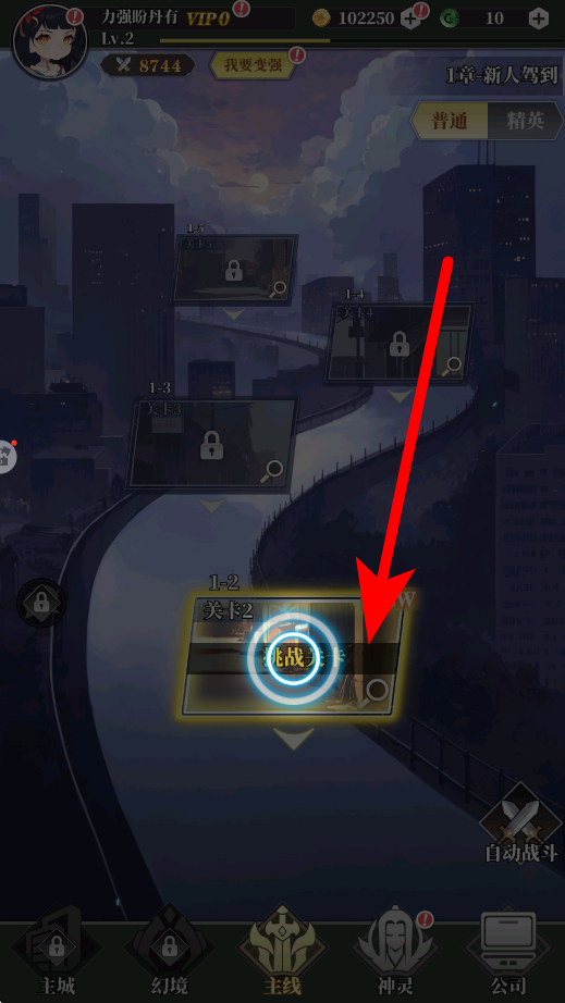 2、关卡挑战可选择相应关卡,如关卡2,点击挑战关卡,即可以进入关卡展开冒险挑战,在关卡中与各类敌人交锋,推进冒险进程。