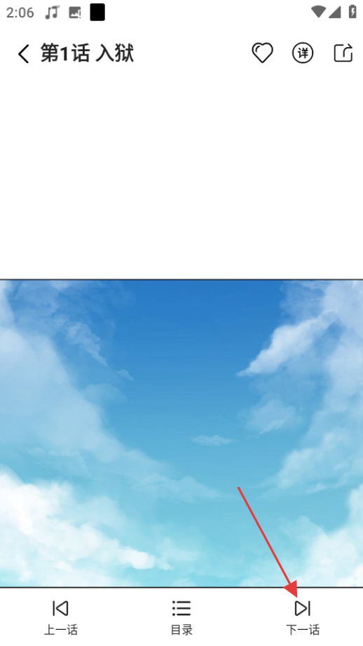 4、在菜单页,点击底部的下一话按钮,可阅读下一话内容。