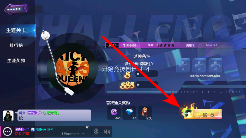 2、挑战需在关卡界面,选择想要参与的挑战,点击挑战按钮,进入舞蹈挑战场景,开启与音乐节奏相结合的舞蹈之旅。