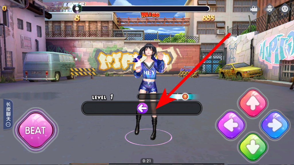3、操作时,根据音乐的节奏与界面的提示,点击或滑动对应的方向按钮,控制角色做出相应的舞蹈动作,跟上音乐的节拍。