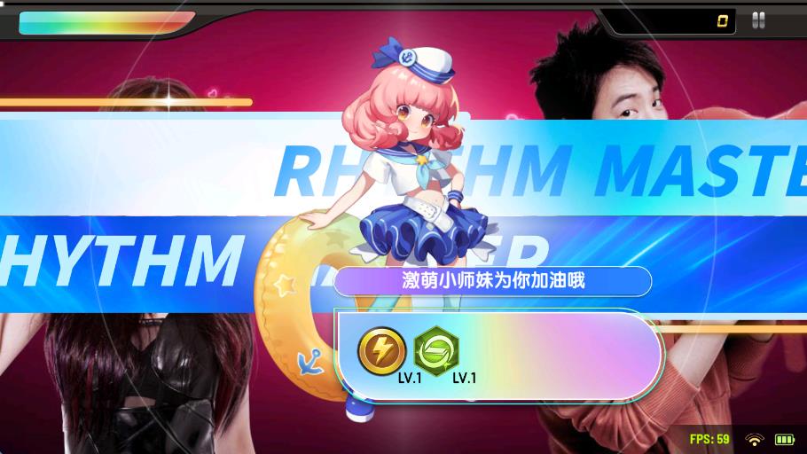 1、玩家开始时,点击闯关,进入闯关界面,开启在音乐节奏类作品中的游玩之旅,准备体验后续的关卡选择、歌曲挑选等操作。