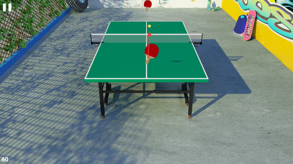 2、逼真场景搭建:球台、球拍、地面材质等细节高度还原真实比赛场景,搭配动态光影与观众席背景,营造出正式乒乓球赛事的紧张氛围,增强代入感。