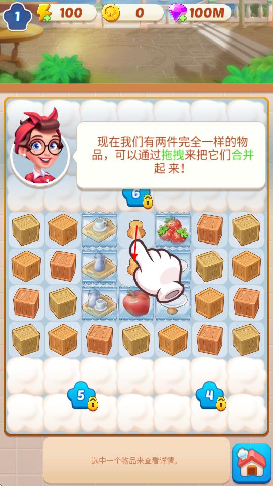 1、当有两件完全一样的物品时,通过拖拽操作将它们合并,开启物品升级与合成的基础步骤。