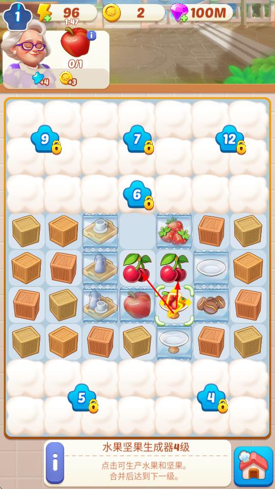 3、利用水果坚果生成器生产水果和坚果,合并生成器可升级,获得更高级的物品产出。