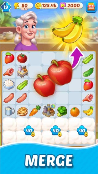 1、烹饪合并核心联动:玩法以烹饪与合并为核心联动机制,先通过基础烹饪获取初始菜品,再依托合并规则将同类菜品升级,每个环节紧密衔接,既让玩家熟悉简单的烹饪流程。