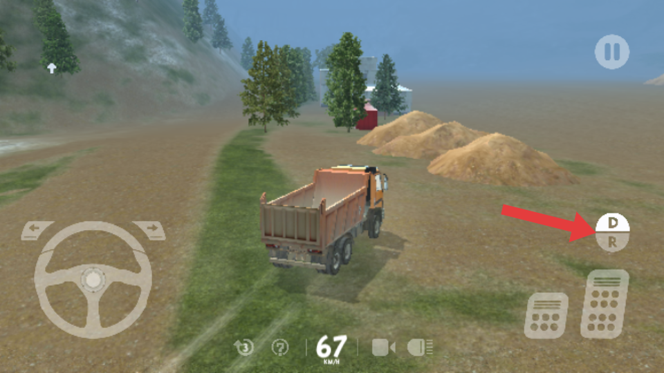 4、点击箭头指向的D档按钮,将卡车档位调整为前进档,使卡车能够向前行驶,这是控制卡车前进的基础操作,确保行驶方向正确。