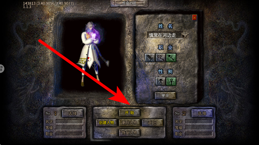 1、创建道士角色时,在角色创建界面,选择职业为道士,设置好姓名、性别等信息,点击提交,完成道士角色的创建,开启在游玩之旅。