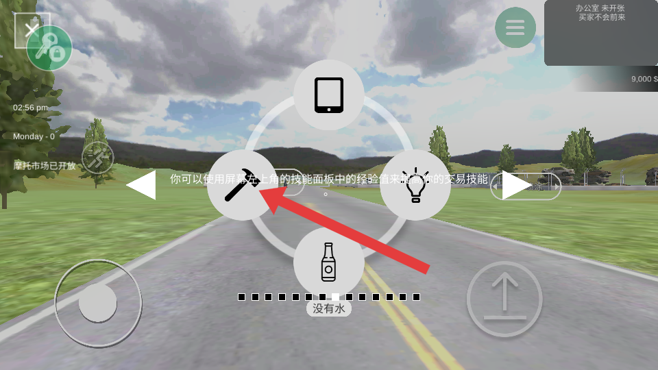 4、点击箭头指向的扳手图标,可使用技能面板中的经验值来提升交易技能,增强在摩托车交易等方面的能力,助力游戏内的商业活动。