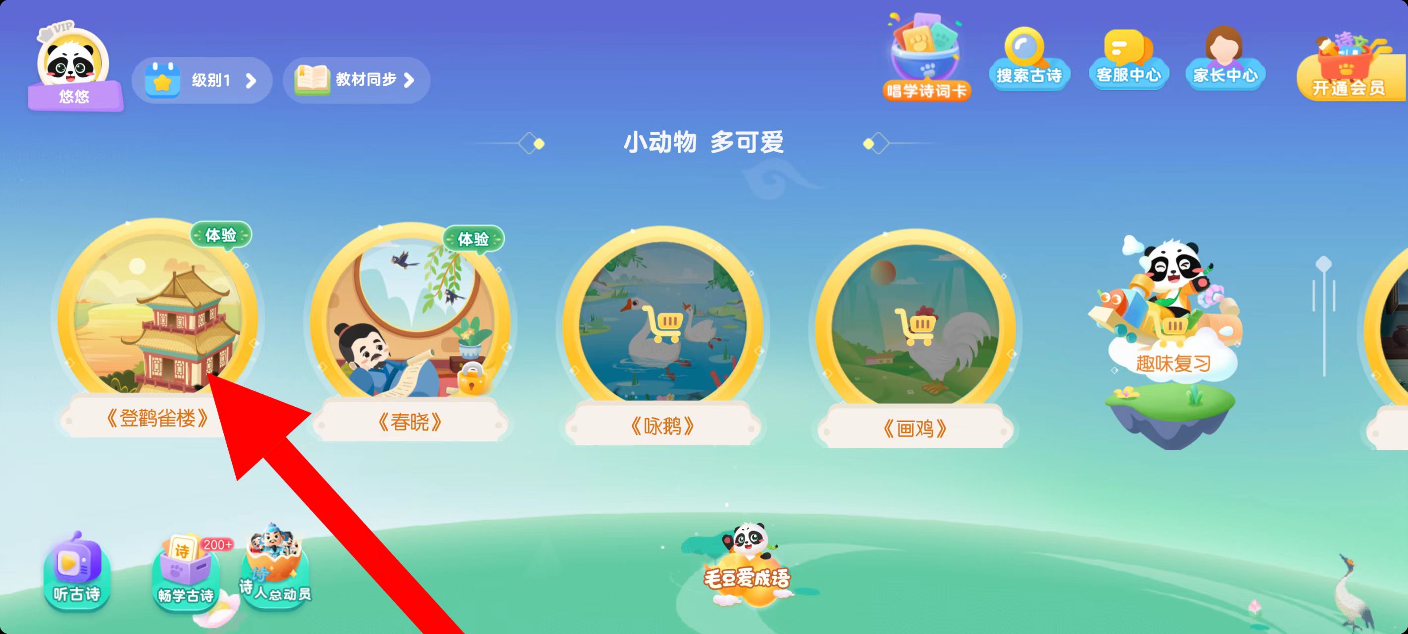 2、在主界面找到图标,点击进入该古诗学习页面。