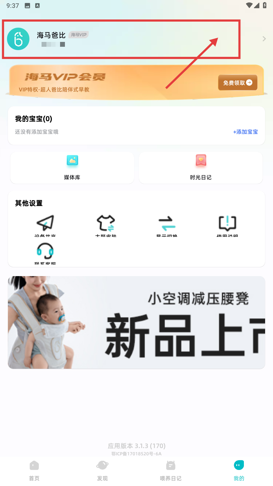 1、打开海马爸比应用,点击底部我的选项,进入个人中心页面。