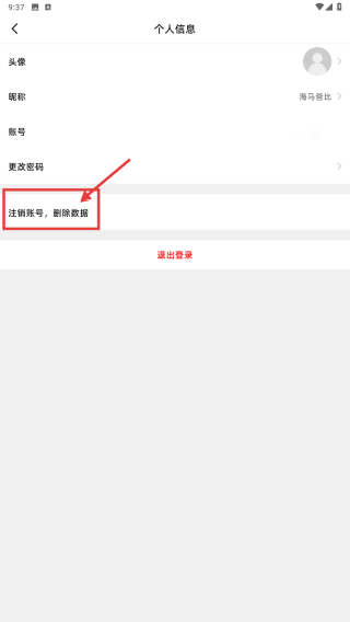 3、在个人信息页面,点击注销账号,删除数据选项,弹出注销账号弹窗。