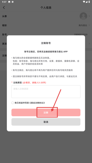 4、在注销账号弹窗中,按要求填写注销原因等信息后,点击注销按钮,进行账号注销操作。
