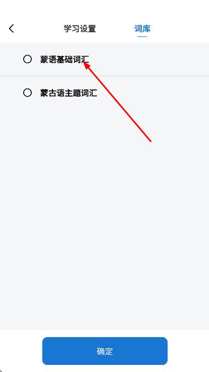 3、在词库选择界面,选择蒙语基础词汇,再点击确定。