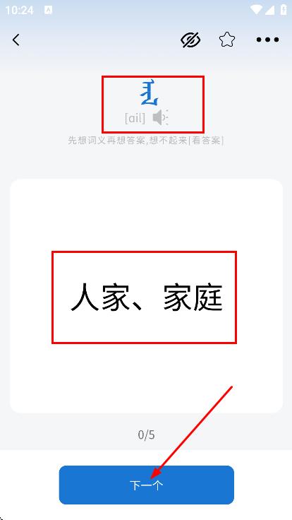 4、进入词汇学习界面,点击下一个,可学习下一个词汇。