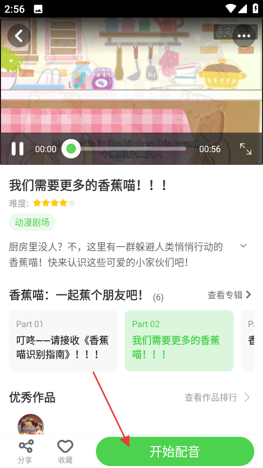 3、在视频详情页,点击开始配音按钮,进入配音页面。