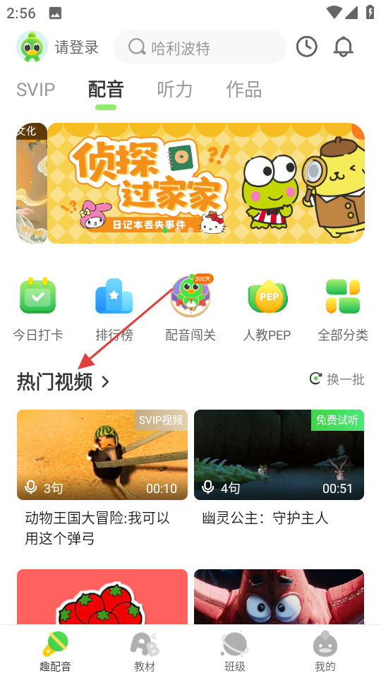 1、选择适配视频素材:打开App后进入素材库,根据孩子的年龄与英语基础,挑选卡通、影片或电视剧类的视频片段,优先选择孩子熟悉或感兴趣的内容,提升参与积极性。