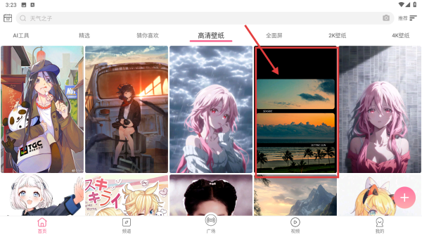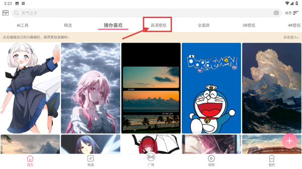 1、打开壁纸类应用,点击顶部高清壁纸分类标签,进入高清壁纸列表页。