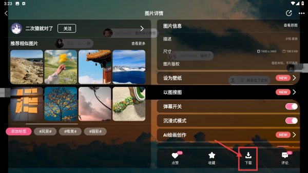 2、下载心仪壁纸:在喜欢的壁纸详情页,点击下载按钮,等待下载的完成,壁纸会自动保存到手机相册或指定文件夹中。