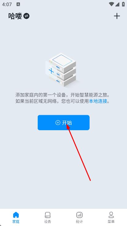 2、进入软件后,点击开始,进入设备添加准备的页面。